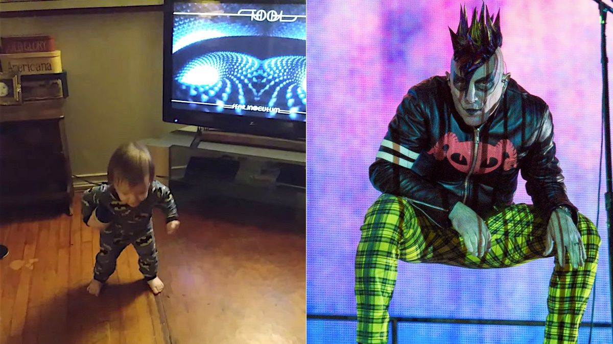 Dancing Tool Baby (via YouTube), Maynard James Keenan de Tool (photo de Kevin RC Wilson)