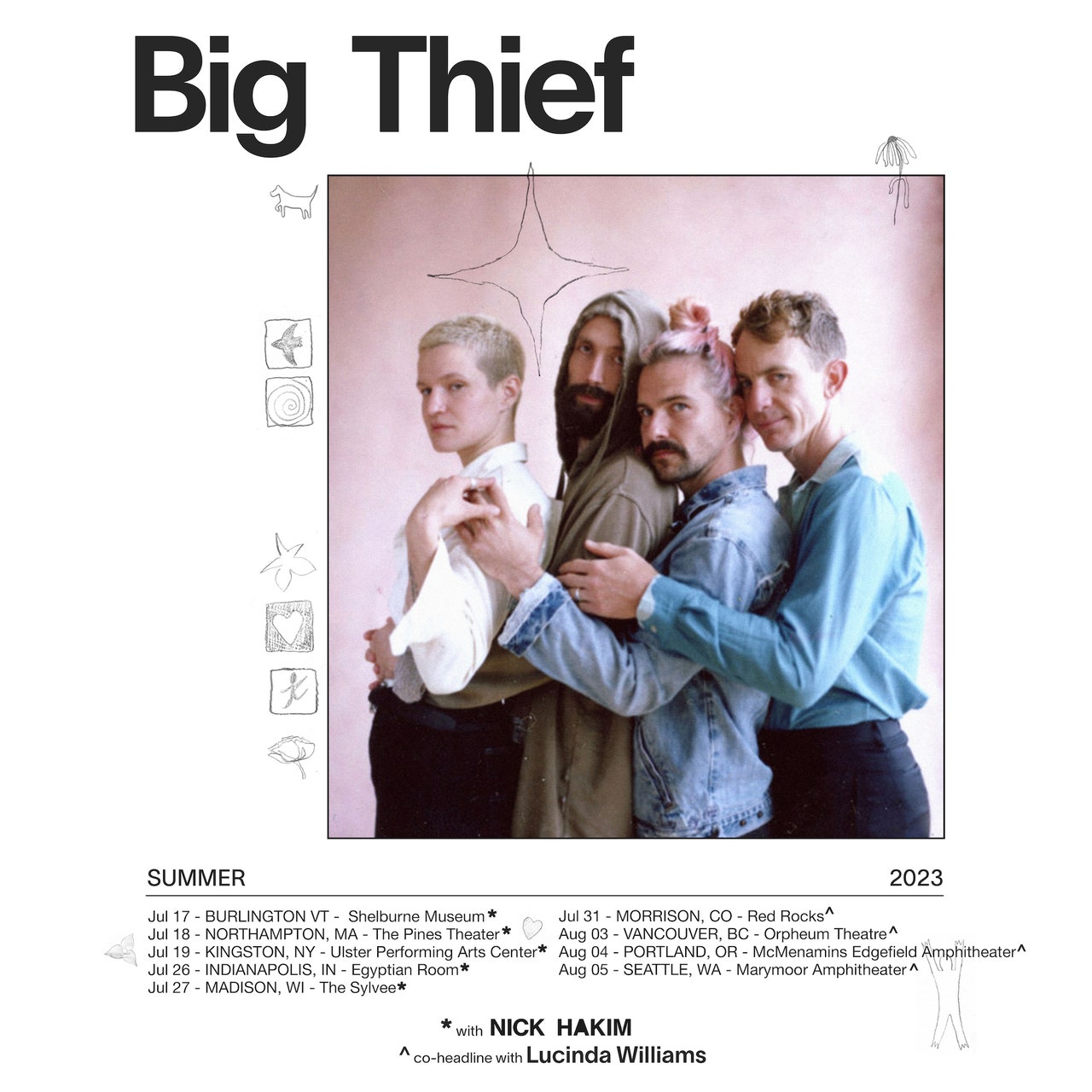 Big Thief a élargi sa tournée 2023, ajoutant des spectacles avec Nick Hakim et une série de dates en co-tête d’affiche avec Lucinda Williams. Les nouveaux spectacles ont lieu en juillet et août Découvrez la liste complète des concerts ci-dessous.