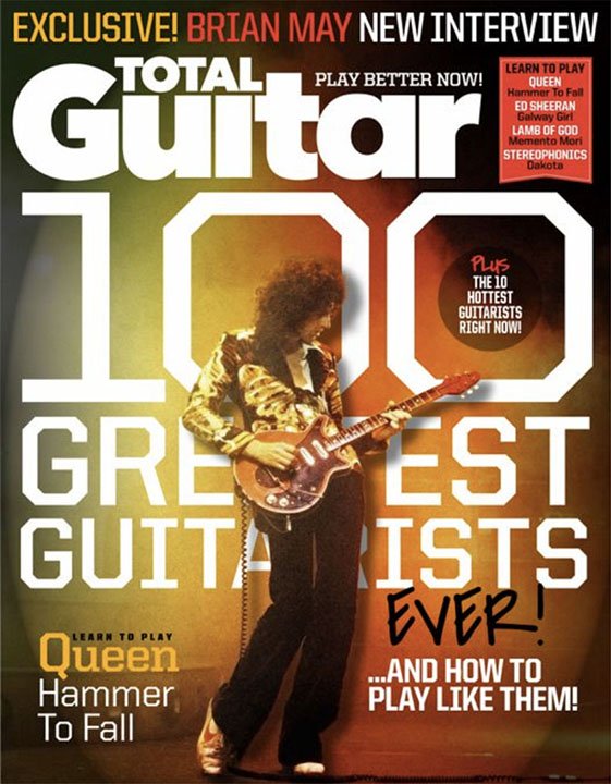 Le magazine Total Guitar du Royaume-Uni a sondé ses lecteurs pour déterminer le plus grand guitariste de tous les temps. Reine le guitariste Brian May a remporté l'honneur en battant des légendes telles que Jimi Hendirx, Eric Clapton, Jmmy Page et Eddie Van Halen.