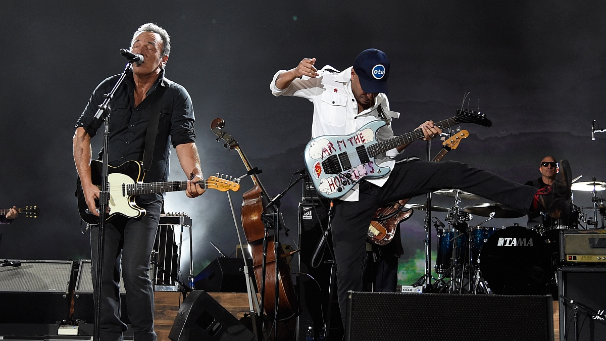 L'ancien membre de la tournée du E Street Band, Tom Morello, a retrouvé Bruce Springsteen au Kia Forum à Inglewood, en Californie, dimanche 7 avril, rejoignant le Boss à la guitare pour « The Ghost of Tom Joad » et « American Skin (41 Shots) ».