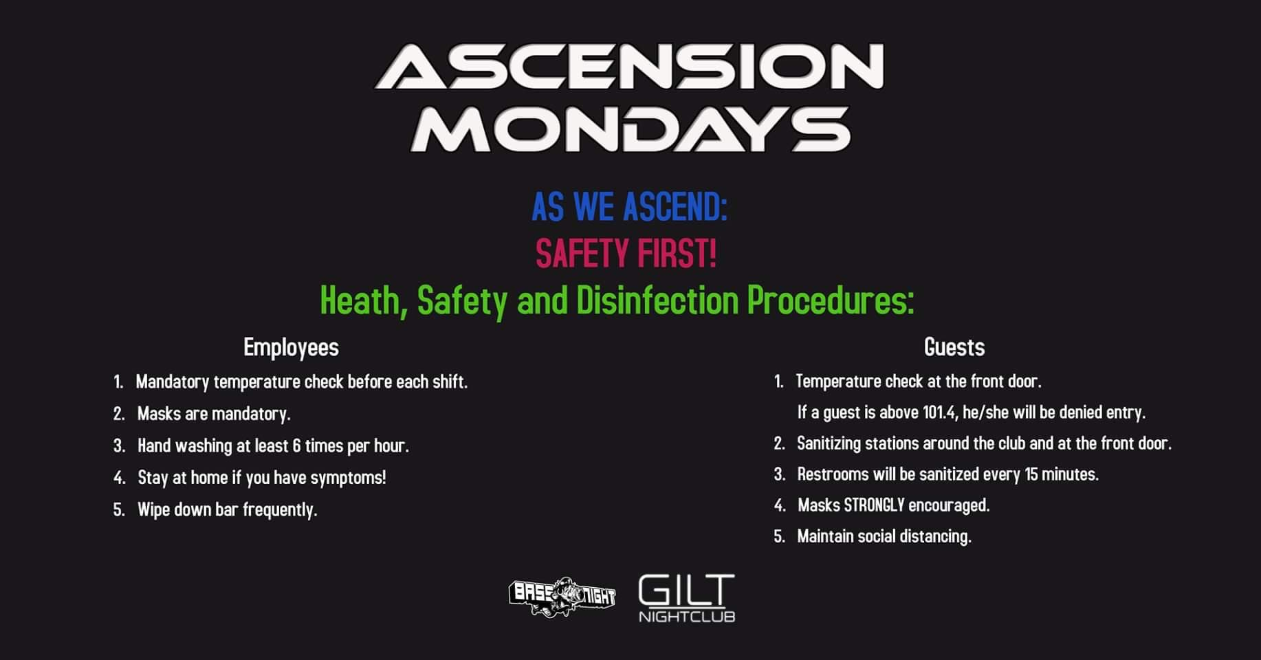 GILT avait mis en place des procédures de sécurité strictes pour les employés et les invités, avec des contrôles de température obligatoires en place, des masques obligatoires pour le personnel et «fortement encouragés» pour les invités. Des postes de désinfection ont été installés tout autour du club, y compris la porte d'entrée. Le personnel devait également se laver les mains au moins 6 fois par heure. Le club lui-même n'était également qu'à moitié capacité, détenant moins de 700 de la salle normalement de 1 500 places.