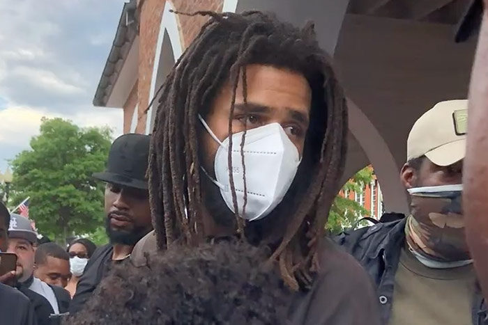 Le rappeur de Caroline du Nord était parmi ceux qui protestaient contre la mort de George Floyd dans sa ville natale de Fayetteville samedi après-midi. Portant un masque, Cole a essayé de garder un profil bas tout en se tenant dans une foule de manifestants qui a commencé dans un Walmart local.