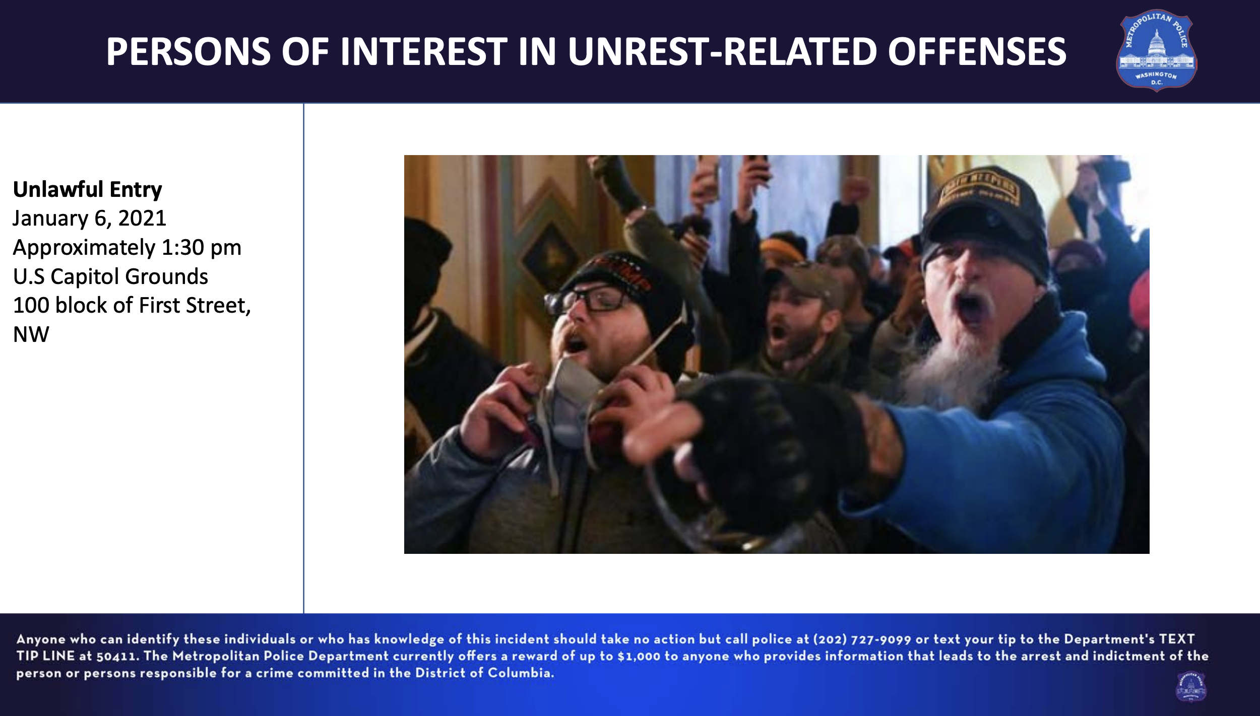 De nombreux fans sur la page Facebook de Iced Earth ont souligné que le MPDC (Département de la police métropolitaine du district de Colombie) a publié une présentation PowerPoint cherchant des informations sur les personnes photographiées en train de piller le bâtiment du Capitole hier.