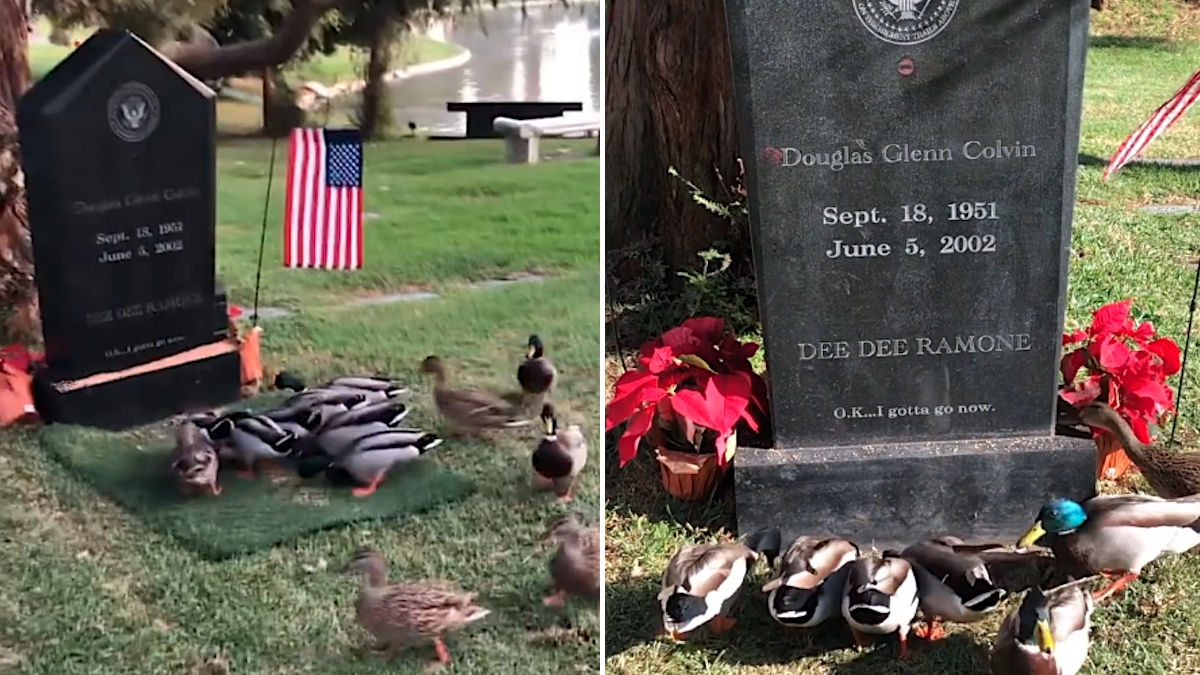Une ribambelle de canards épris de punk rendent hommage quotidiennement au regretté Dee Dee Ramone. Les colverts moshing visitent régulièrement la tombe du légendaire bassiste des Ramones au cimetière Hollywood Forever, grâce à un couple intelligent de Los Angeles.