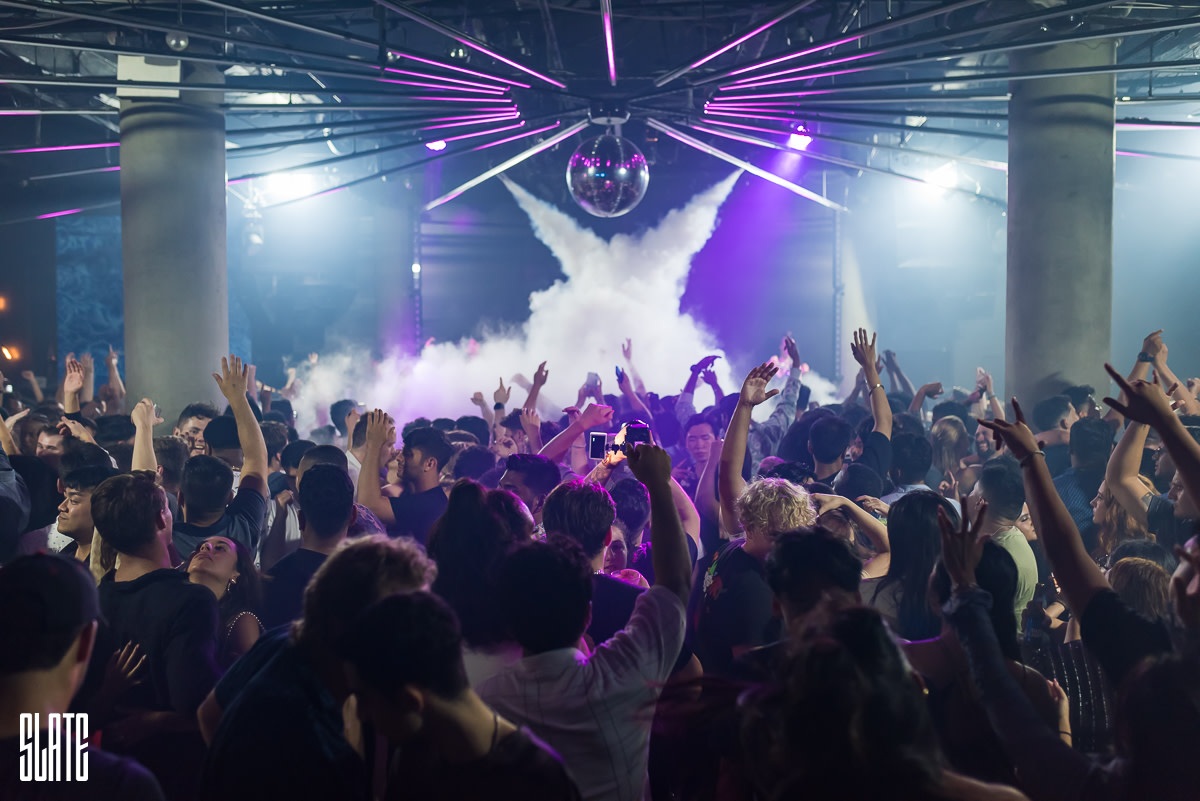 L’espace clubbing de Slate est ouvert le vendredi et le samedi, le premier proposant une expérience musicale diversifiée et le second dédié aux sons de l’EDM. Le sous-sol, quant à lui, est ouvert sept jours sur sept et propose de la musique live les lundis et mardis.