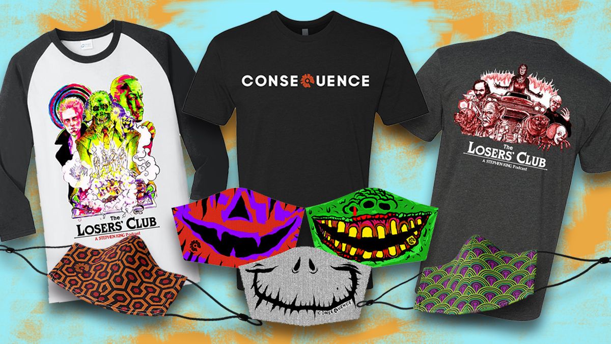 Pour une durée limitée, nous emballons trois T-shirts avec un masque gratuit de votre choix. Lorsque vous achetez l'un des t-shirts de marque Losers ’Club en édition limitée: A Stephen King Podcast ou le Conséquence nom de la chemise à logo, nous ajouterons notre masque de gardien le plus vendu, notre tout nouveau masque Bellhop 237, ou tous les trois de nos masques fantaisie sur le thème d'Halloween gratuitement. C’est une bonne affaire effrayante que vous souhaiteriez pouvoir durer éternellement, mais les stocks sont limités!