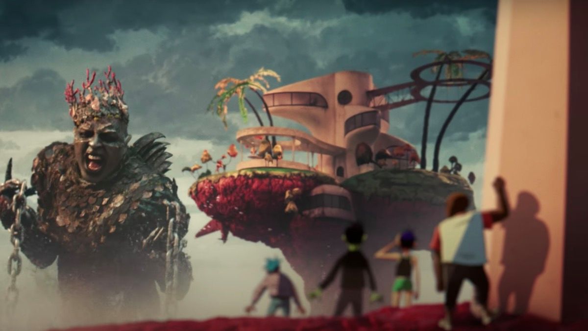Pour celui-ci, le gang – 2D, Murdoc, Noodle et Russel – revient à Plastic Beach, le décor de leur album de 2010. Malheureusement, leur visite est de courte durée, car un monstre marin dépeint par Leee John émerge des profondeurs de l’océan et détruit l’ancienne maison balnéaire de Gorillaz. Découvrez ci-dessous l'expérience visuelle complète de Jamie Hewlett.