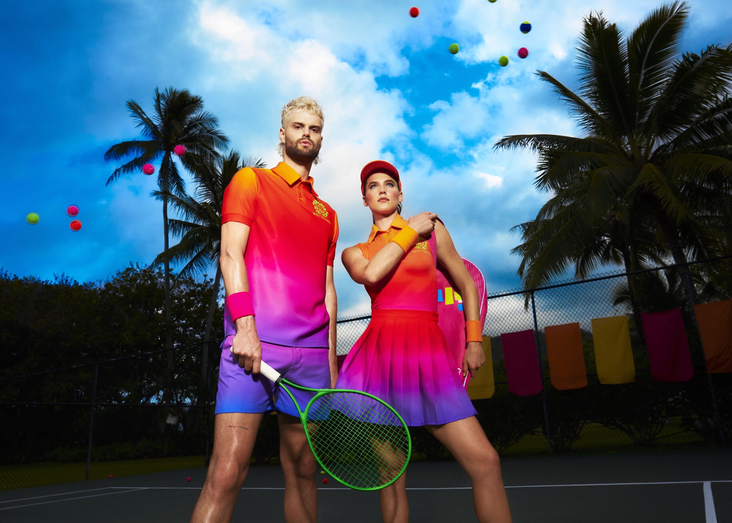 Nous avons eu une équipe incroyable de collaborateurs créatifs et d’amis pour cette vidéo. Nous avons d’abord imaginé le concept ensemble dans une pièce avec notre directrice créative du projet, Amber Park, et notre styliste, le designer Johnny Wujek. Nous avons ensuite fait appel au génie Aerin Moreno, qui est le réalisateur de la vidéo. Nous savions que nous voulions que la vidéo soit comme le jardin d’eden du monde du Wet Tennis. Et nous savions que nous voulions porter des tenues de tennis lumineuses super colorées. C’est le résultat de beaucoup de conversations, d’images et d’idées qui vont et viennent entre nous tous. Il nous a fallu un certain temps pour clouer la vidéo, en fait. La vidéo nous a pris un certain temps à perfectionner parce que nous voulions trouver l’équilibre parfait entre le monde du Wet Tennis et l’esthétique tout en restant fidèle aux paroles et à l’ambiance d’Original Sin.