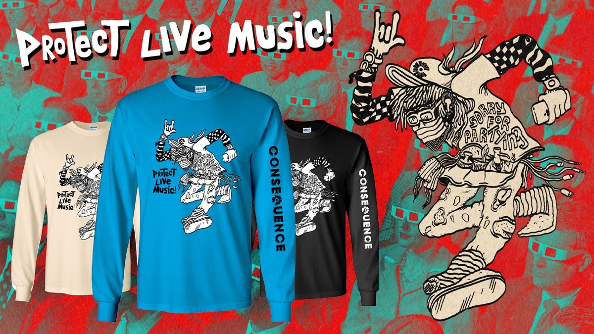 En tant que publication indépendante avec une base profonde dans la musique live, Conséquence du son voulait faire notre part pour soutenir les nombreux sites confrontés à des difficultés pendant la pandémie. C’est pourquoi nous avons été ravis de voir un si grand nombre de nos fans se mobiliser pour aider l’industrie du concert en difficulté en achetant notre chemise à manches longues «Protect Live Music». Pour maintenir l'élan, nous sommes fiers de lancer une deuxième version du design, dont les bénéfices seront à nouveau reversés aux salles de musique indépendantes dans leurs efforts de récupération.